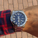 Men's watch, with an elegant, classic and luxurious design, made of a stainless steel bracelet and a three-fold clasp. It features an analog display made of mineral glass, equipped indicators to display the date