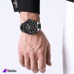 A men's watch made of high-quality materials. This watch is designed in an elegant and distinctive way to suit people with high tastes, as it comes in a circular shape, with large hands and a colored hand indicating the seconds