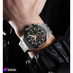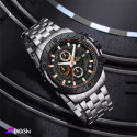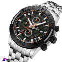 Men's watch, with an elegant, classic and luxurious design, made of a stainless steel bracelet and a three-fold clasp. It features an analog display made of mineral glass