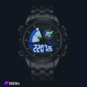 Original men's watch Water resistant Comes stamped with code 3 months warranty With alarm, light and sports counter Analog hands Digital watch with calendar