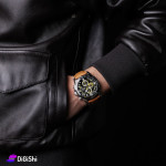 Men's watch, with a classic and luxurious elegant design, made of a luxury leather strap, featuring a Hong Kong chrono machine and a 3-month warranty