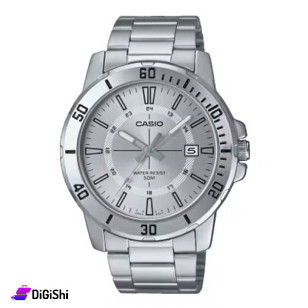 Men's watch, with an elegant, classic sport design, made of Stainless steel. It features an analog display made of mineral glass, equipped indicators to display the date