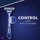 This razor features a comfortable and secure handle for optimum control and a movable head that adapts to the shape of the face