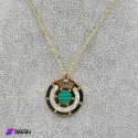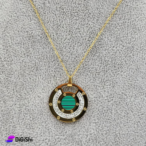 Stainless Steel Necklace with Semicircular Pendant and Strass Gold and Green
