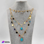 A women's necklace made of premium gold stainless steel. It features a wonderful and attractive design as it comes in Threerounds with large blue stones in the shape of a tear, adding an elegant touch to your neck.