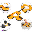 Triple glass holder specially designed for lifting and moving glass or other flat panes, with two locks that create pressure at the lock to hold the glass firmly without it falling off, then you can unlock the locks so you can release the glass when you're done
