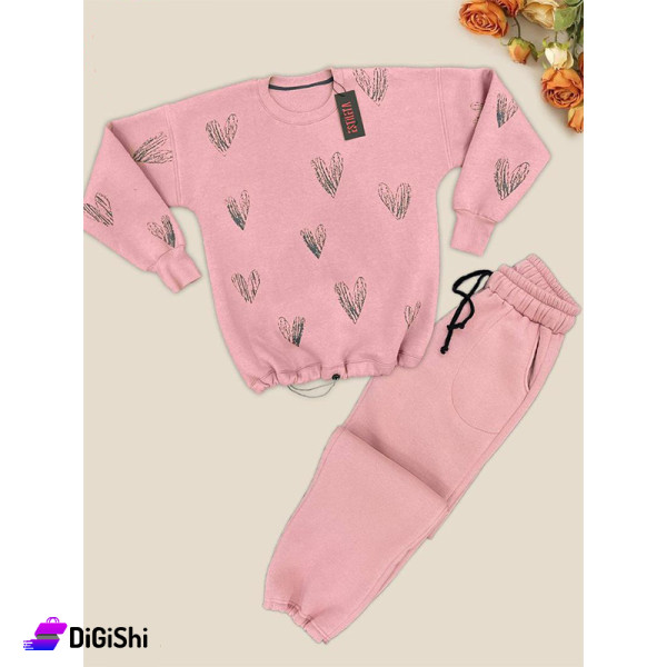 Women's winter pajamas Made of Cotton fleece fabric, with a beautiful and elegant design, consisting of sweater and trousers