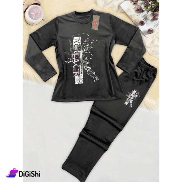 Women's winter pajamas Made of velvet with 2 thick sides, with a beautiful and elegant design, consisting of sweater and trousers