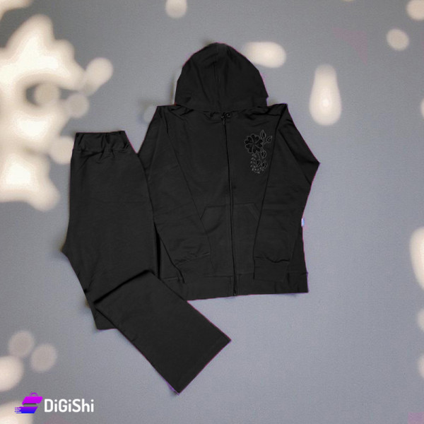 Women's spring pajamas, made of high-quality twill, with a beautiful and elegant design, consisting of a stylish zippered jacket, in addition to ankle-length pants