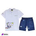 A beautiful design summer boy's set consisting of a half-sleeved cotton sweater with a beautiful pattern, and polyester short
