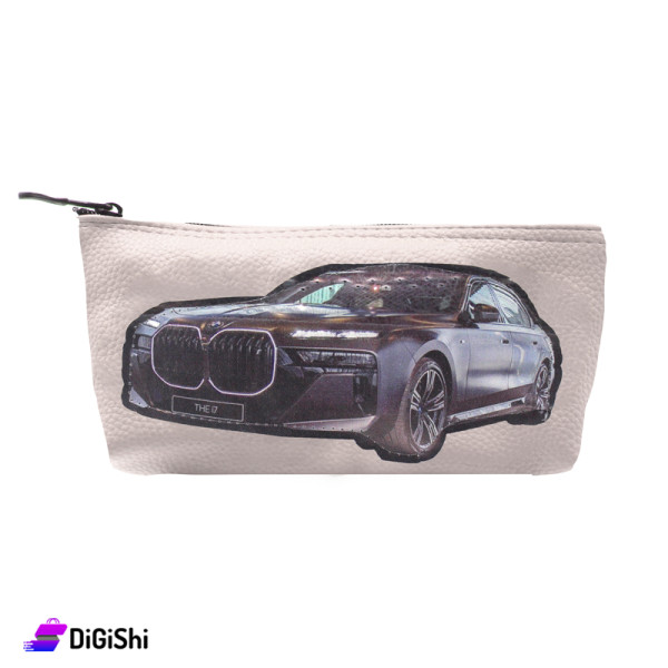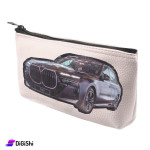 Single Layer Leather Pencil Case with Black Car Design