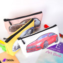 Leather Rectangular Pencil Case with Black Car Design, Single Layer, Helps Save Plenty of Space for Storage Pens, Staplers, Erasers and Other School Supplies