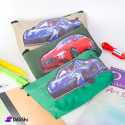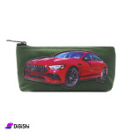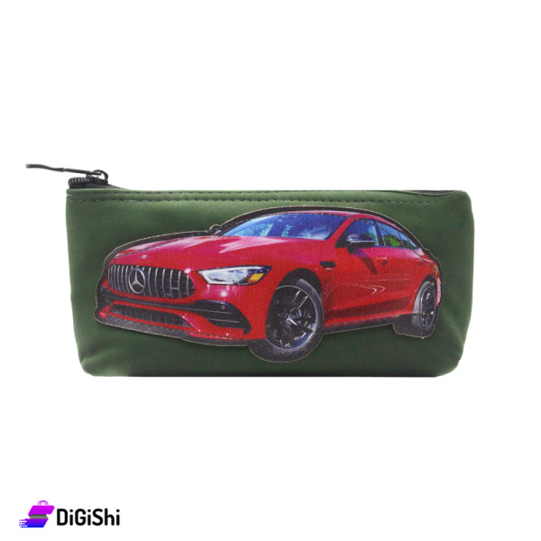 Leather Rectangular Pencil Case with Red Car Design, Single Layer, Helps Save Plenty of Space for Storage Pens, Staplers, Erasers and Other School Supplies