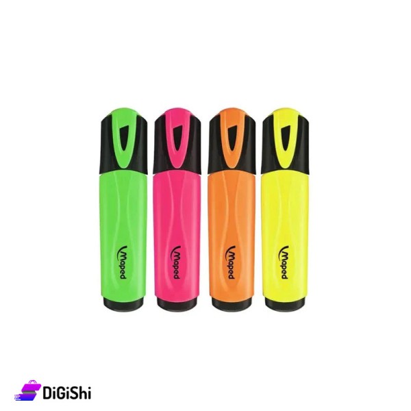 Set of highlighters with vibrant phosphorescent colors, it's quick-drying helps highlight and emphasize words and sentences perfectly, their wide design is comfortable to use and prevents them from rolling off surfaces