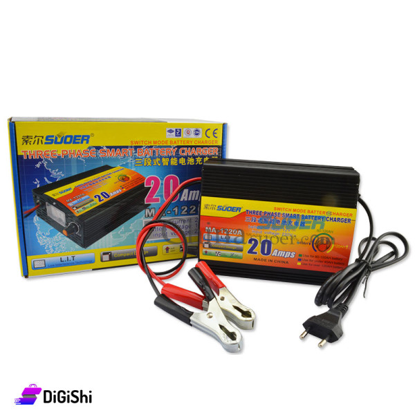 Highly efficient battery charger, equipped with protection systems against high temperature, over voltage and short circuit protection, works in three-stage charging mode and provides fast, regular and safe charging