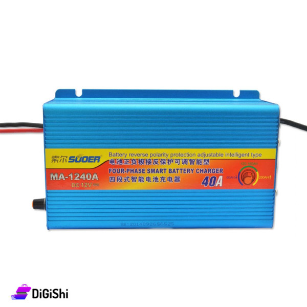 Highly efficient battery charger, equipped with protection systems against overheating and short circuit protection, and it is also equipped with an outlet with a cooling fan for protection during overvoltage, and provides fast, regular and safe charging