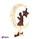Crescent-shaped decoration with Ramadan Kareem star pendant, made of solid wood, with a base so that you can place it on the table or shelves, it is nicely designed and eye-catching details