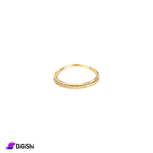 A golden ring characterized by its thin design and bright color with zircon stones that add a touch of luxury and elegance to the piece, as it gives your hand a delicate feminine touch