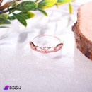 A ring studded with zircon stones, it comes in a bright rose color, to match most accessories, whether in silver or gold, and it can be worn on more than one finger with a group of classic rings