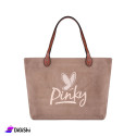 A large women's bag, made of velvet, featuring a butterfly graphic with the Pinky logo, giving it an elegant touch