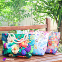 A large women's beach bag padded from the inside, made of high-quality linen, consisting of one very wide layer and an internal pocket, It is also equipped with a shoulder strap made of braided threads