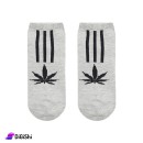 A leaf drawings and three black stripes have been added to the top of the sock to give aesthetic to the design