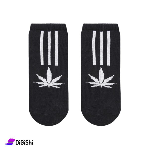 ZOX Cotton Short Men's Socks Leaf Drawings - Black
