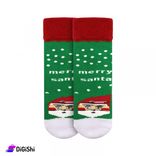 Pairs of Women's Towel Medium Socks with a Merry Santa - Green