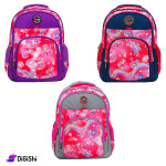 School backpack, made of quilted fabric, featuring an elegant and distinctive design, satin printed girls