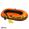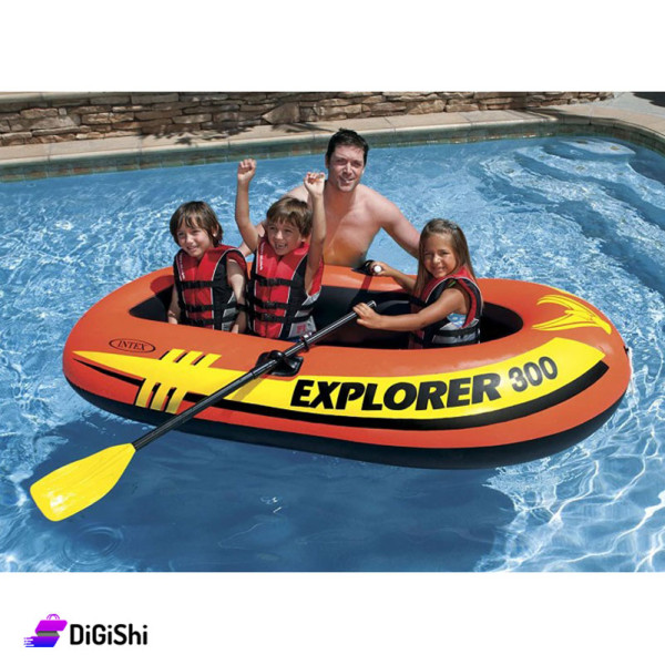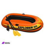 This three-person inflatable boat features a grab rope, oar locks and a soft inflatable floor for easy sailing. The set also comes complete with 48-inch deluxe aluminum oars and a mini hand pump