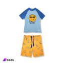 A beautiful designed summer boy's set consisting of a half-sleeved sweater with a beautiful pattern, and scuba shorts of excellent quality