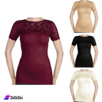 Plain, seamless women's sweater, with an elegant and beautiful design, with distinctive lace half-sleeves, made of hypoallergenic microfiber yarns, its design is practical and comfortable, and fits the body in every detail