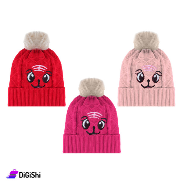 Children's hat, made of wool and lined with soft fur, to give your child warmth during the winter, It is distinguished by its beautiful and durable knitting, bright colors with a Face Drawing