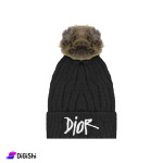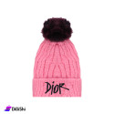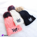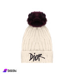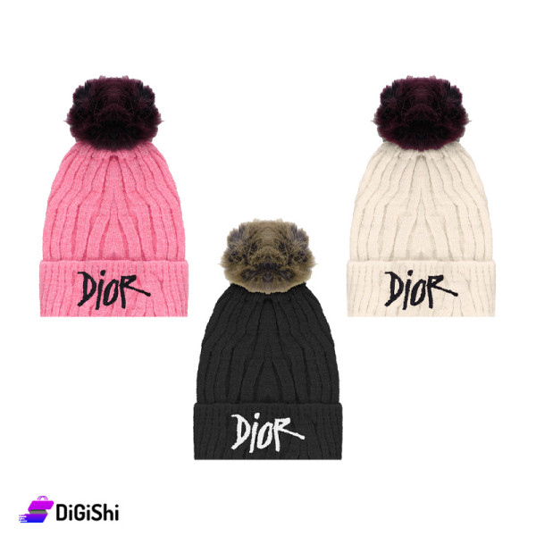 Women's hat, made of velvet wool, to give you warmth during the cold winter months, It has a cute and distinctive design and elegant colors, with a wine colored fur ball for the off white and pink hats, and light brown ball for the black hat, with the DIOR logo