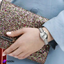 Women's watch, with an elegant, classic and luxurious design, made of a stainless steel bracelet and a three-fold clasp. It features an analog display made of mineral glass