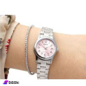 Women's watch, with an elegant, classic and luxurious design, made of a stainless steel bracelet and a three-fold clasp. It features an analog display made of mineral glass