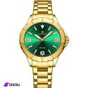Women's watch, with an elegant, classic and luxurious design, made of a stainless steel bracelet and a three-fold clasp. It features an analog display made of mineral glass