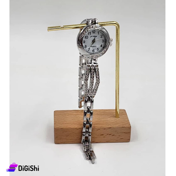 Women's Watch Studded with Zircon Rose Shape Silver Color