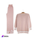 A women's set made of high-quality tricot fabric, with a beautiful design, consisting of a plain sweater with a wide design with striped buttons at the bottom of the sleeves and the sweater, which adds an elegant and striking modern touch to it