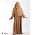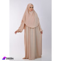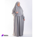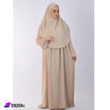 Long sleeve Islamic thobe with full sash and scarf, featuring a long and loose design made of high quality fabric that is soft, skin-friendly, breathable and stretchy, making it comfortable to wear all day long