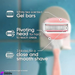 Triple blade heads for precise and clean hair removal. It contains three built-in blades in addition to a glycerin gel moisturizer for smoother gliding, without the need for separate soap or shaving gel. The blade is also supported by cushions around the blades that help protect the skin from cuts for a better shave. Safe, fresh and flawless skin